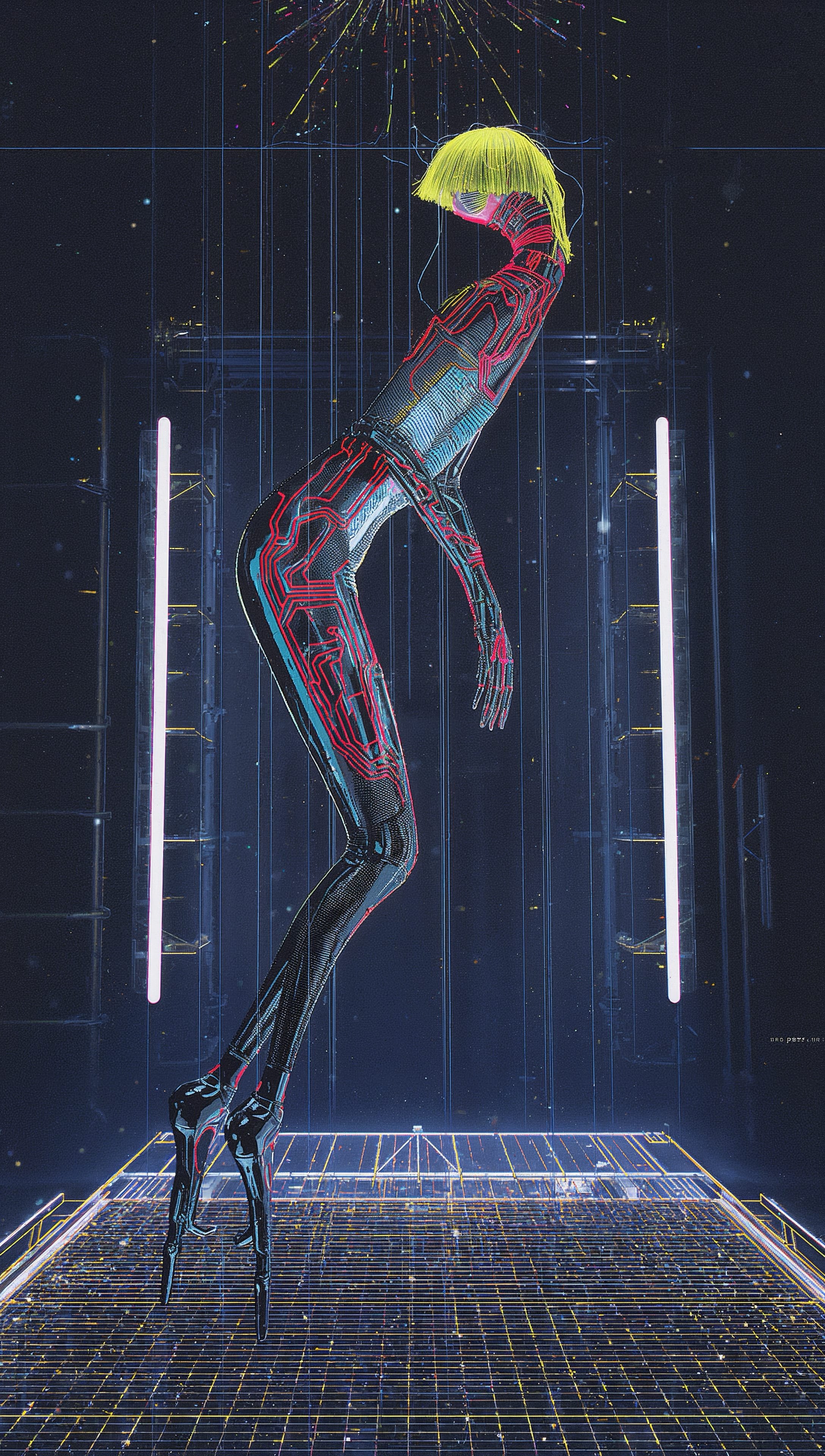 The inhabitants appear as mutants or chimeras: entities whose anatomy combines organic tissue with synthetic materials, conductive fibers, and unfamiliar surface structures. Their bodies reflect continuous processes of modification and adaptation within a technological ecosystem that treats the body as a modifiable infrastructure.